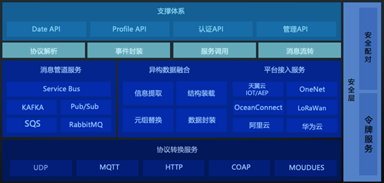 hg57体育物联网中台是连接终端、平台与行业应用系统的数据交换中心。旨在解决不厂商、不同品类、不同通讯类型的终端端产品快速上云,同时实现对产品管理、产品协议解析、设备管理、存储、转发和命令下发等功能;应用侧提供了丰富API接口,多元数据推送功能。使平台接入者可以更加专注于自身应用的开发,而不用将工作重心放在设备接入层的环境搭建上。从而缩短物联网系统的形成周期,降低平台接入者研发、运营和运维成本。